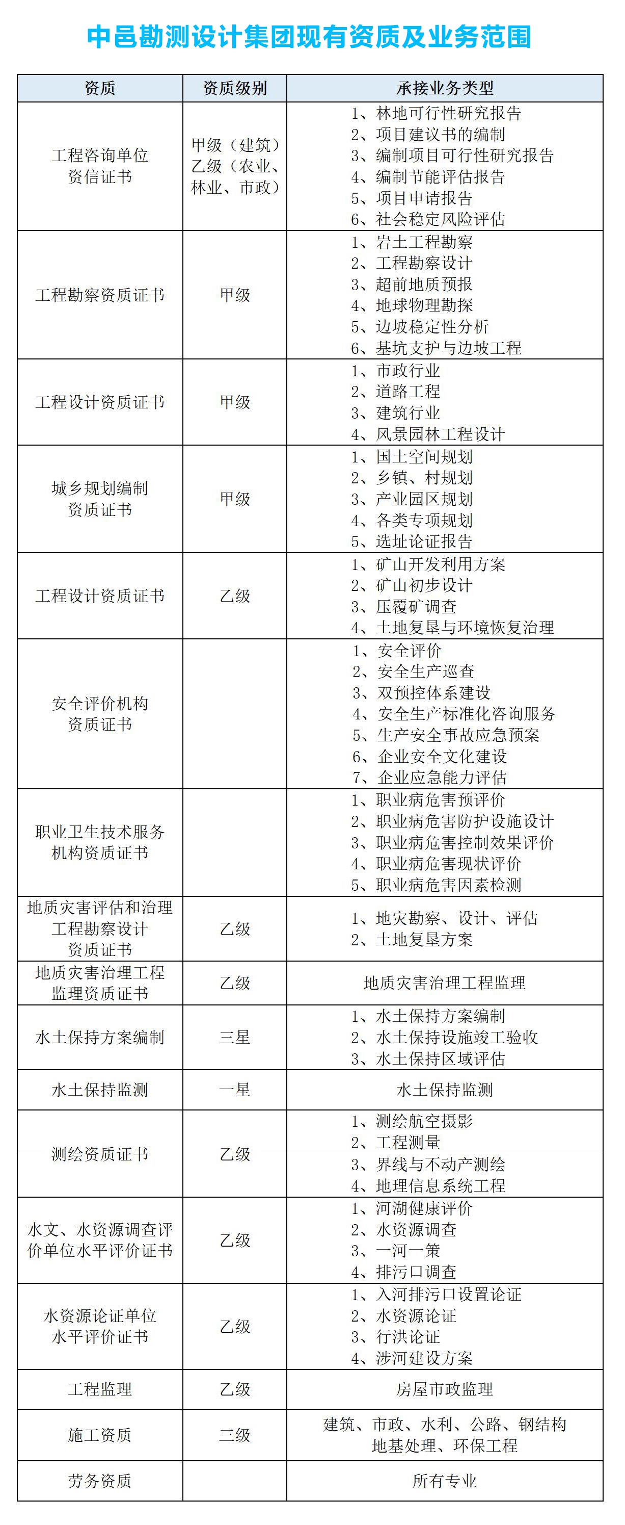 公司現有資質如下:
